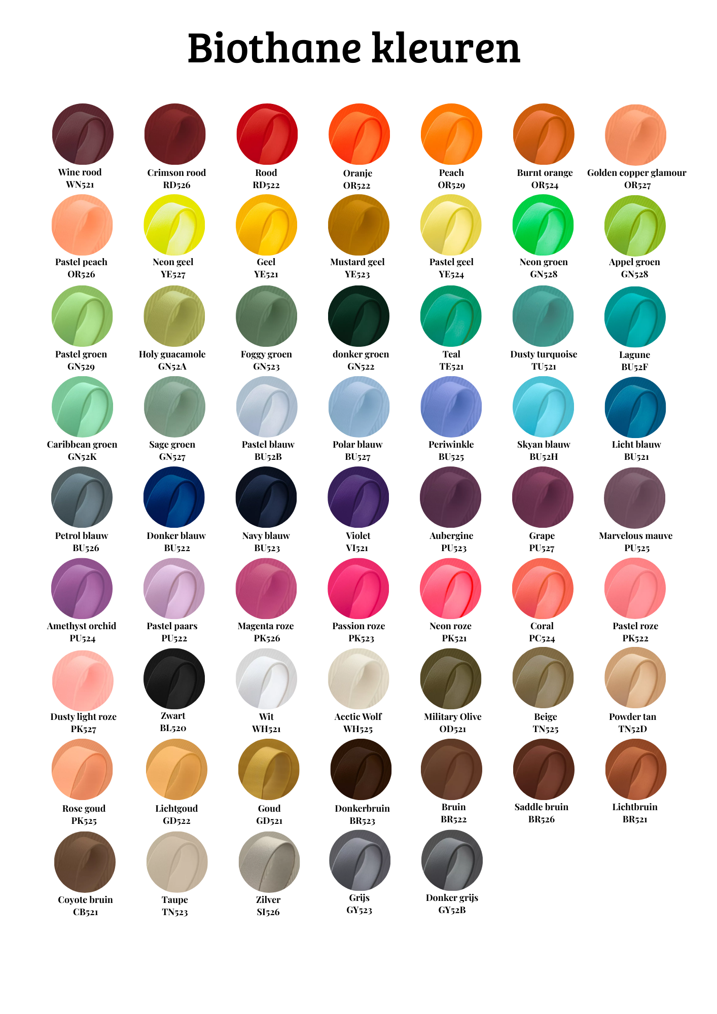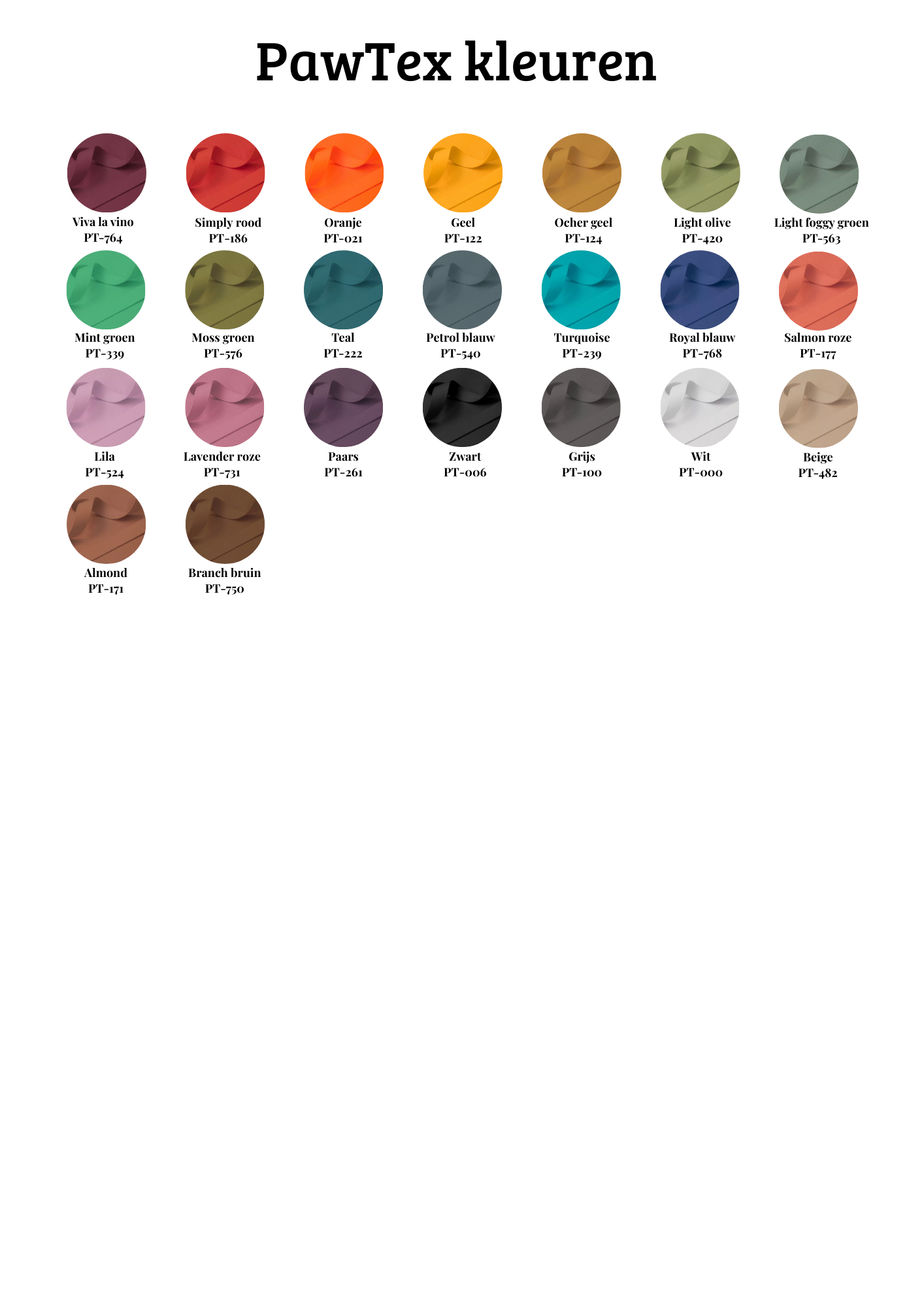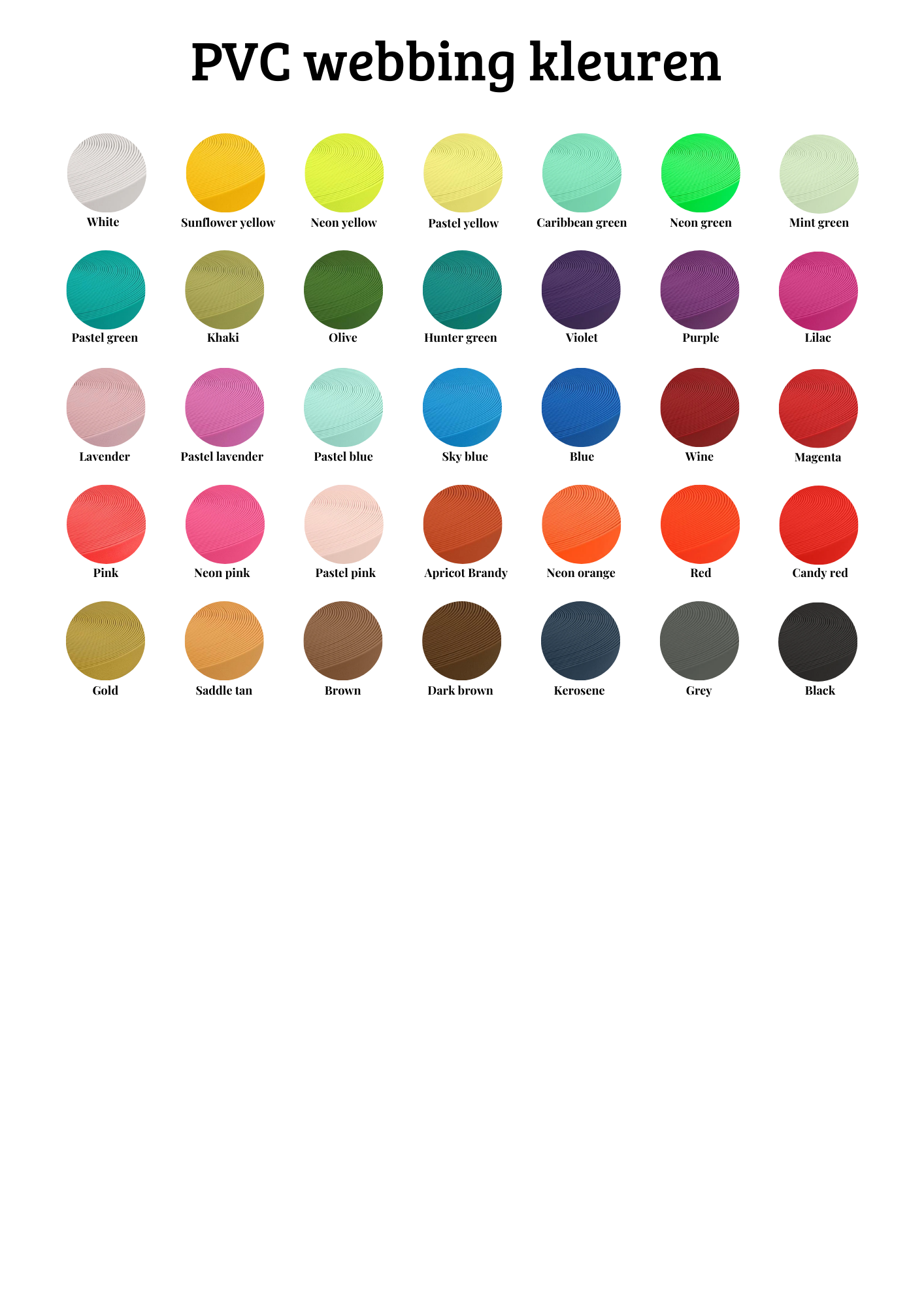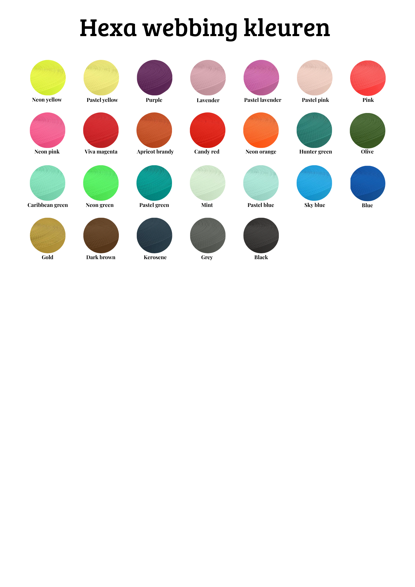 Bekijk hier de kleuren per soort webbing.